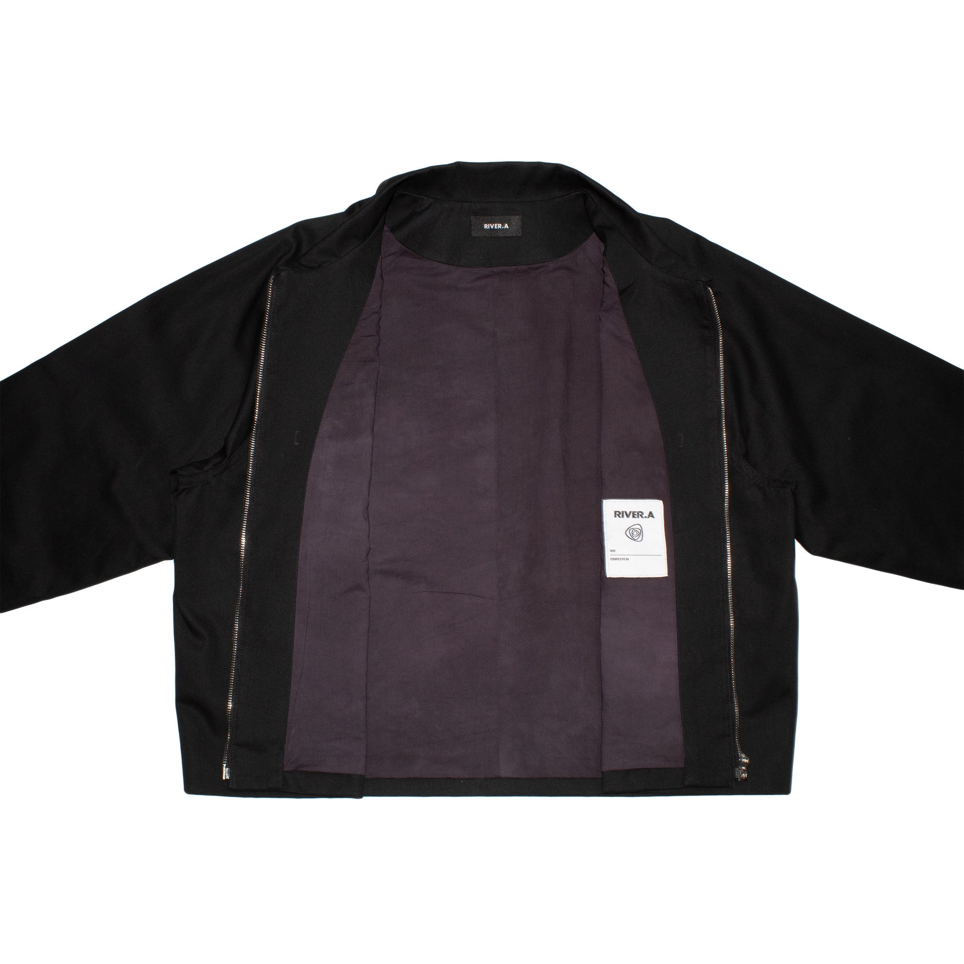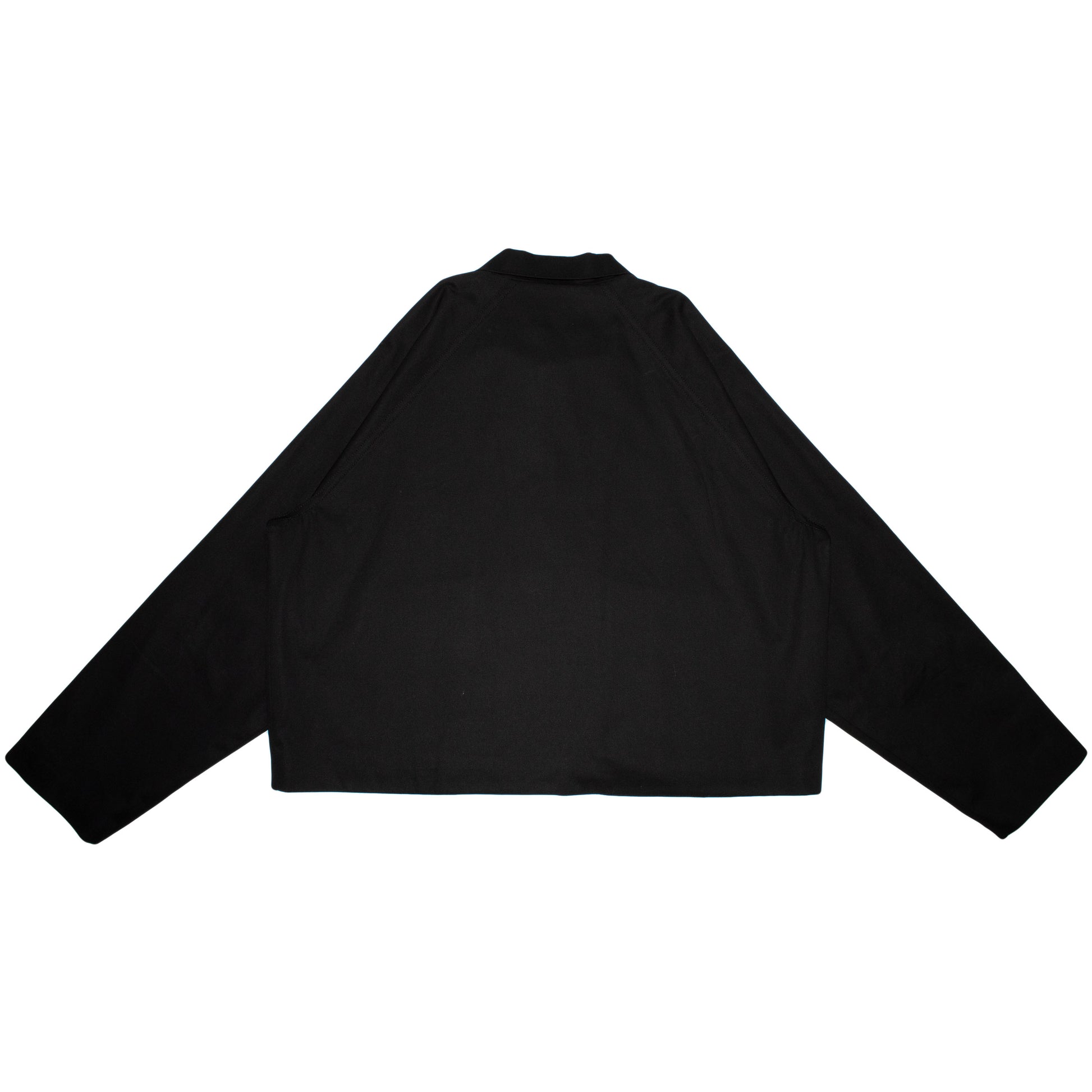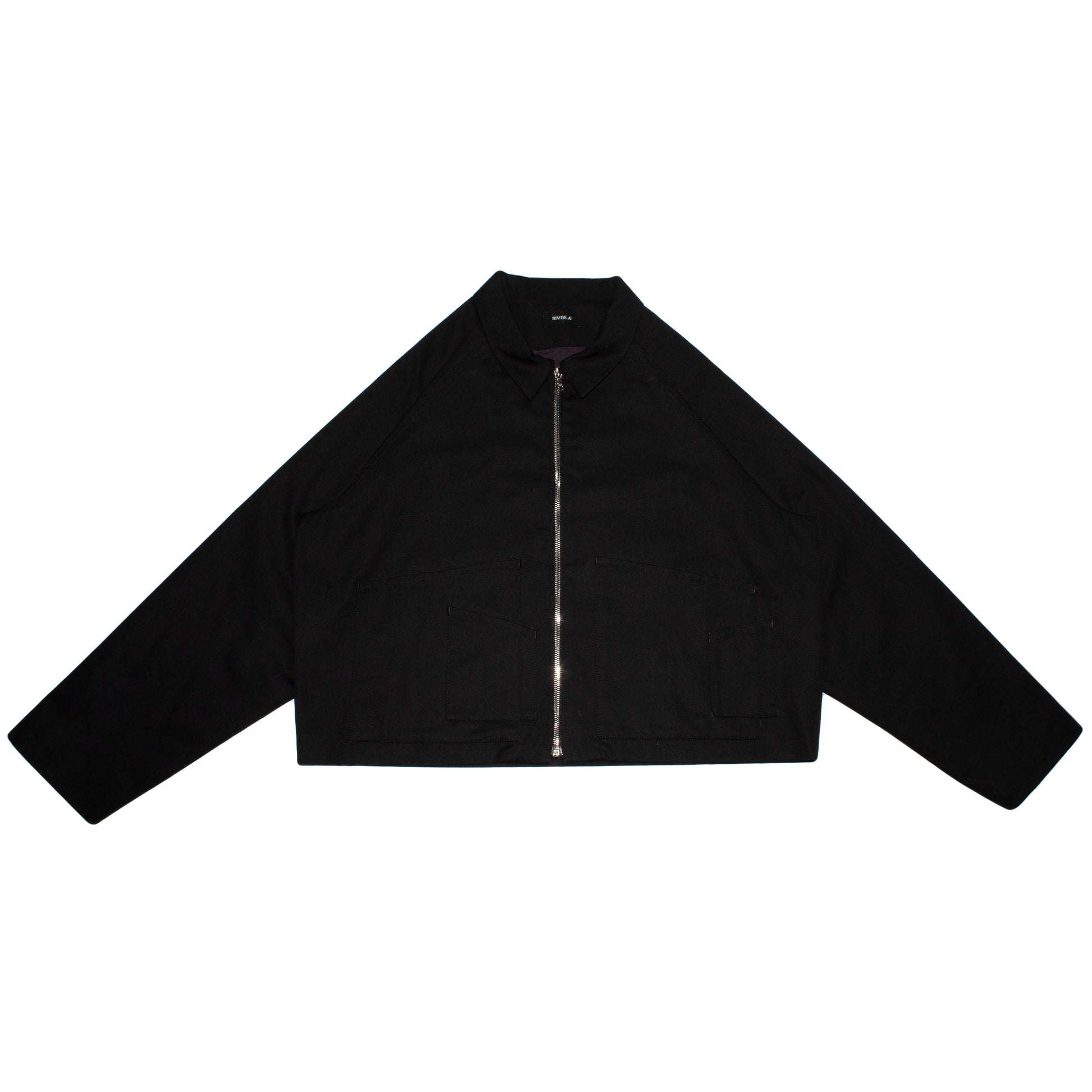 The jacket features raglan sleeves and oversized front patch pockets with an angular cut, offering both function and comfort. The RIRI zipper runs cleanly down the front, adding a utilitarian edge to the softened silhouette. Fully lined and dyed in-house as part of the process.