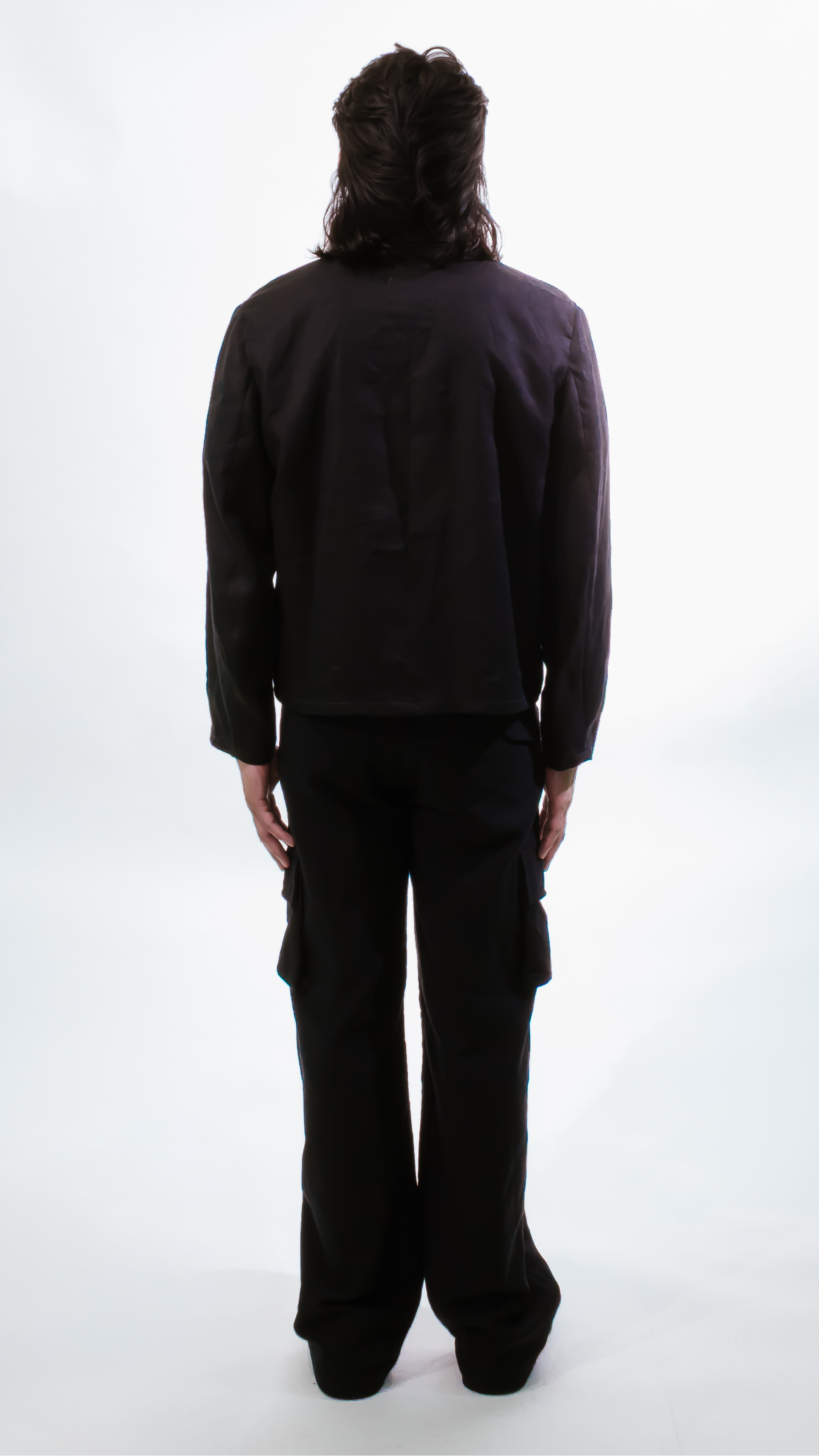 Inspired by vintage French workwear, this jacket balances utility with subtle refinement. The chest pocket includes a concealed interior lining, offering discreet storage for small items, while two front patch pockets add to its structured silhouette. The two-piece sleeve curves naturally with the arm, improving both fit and mobility.