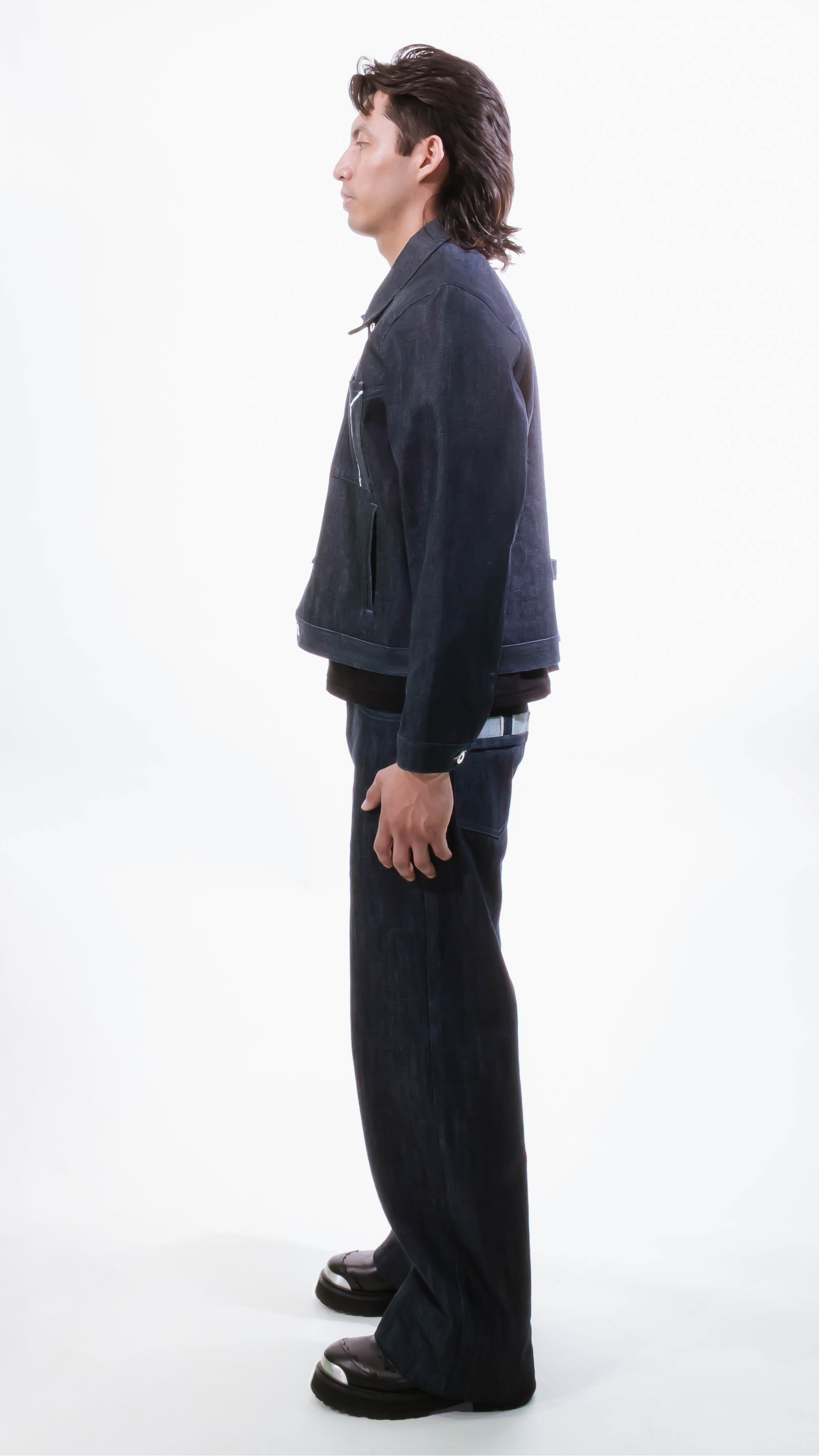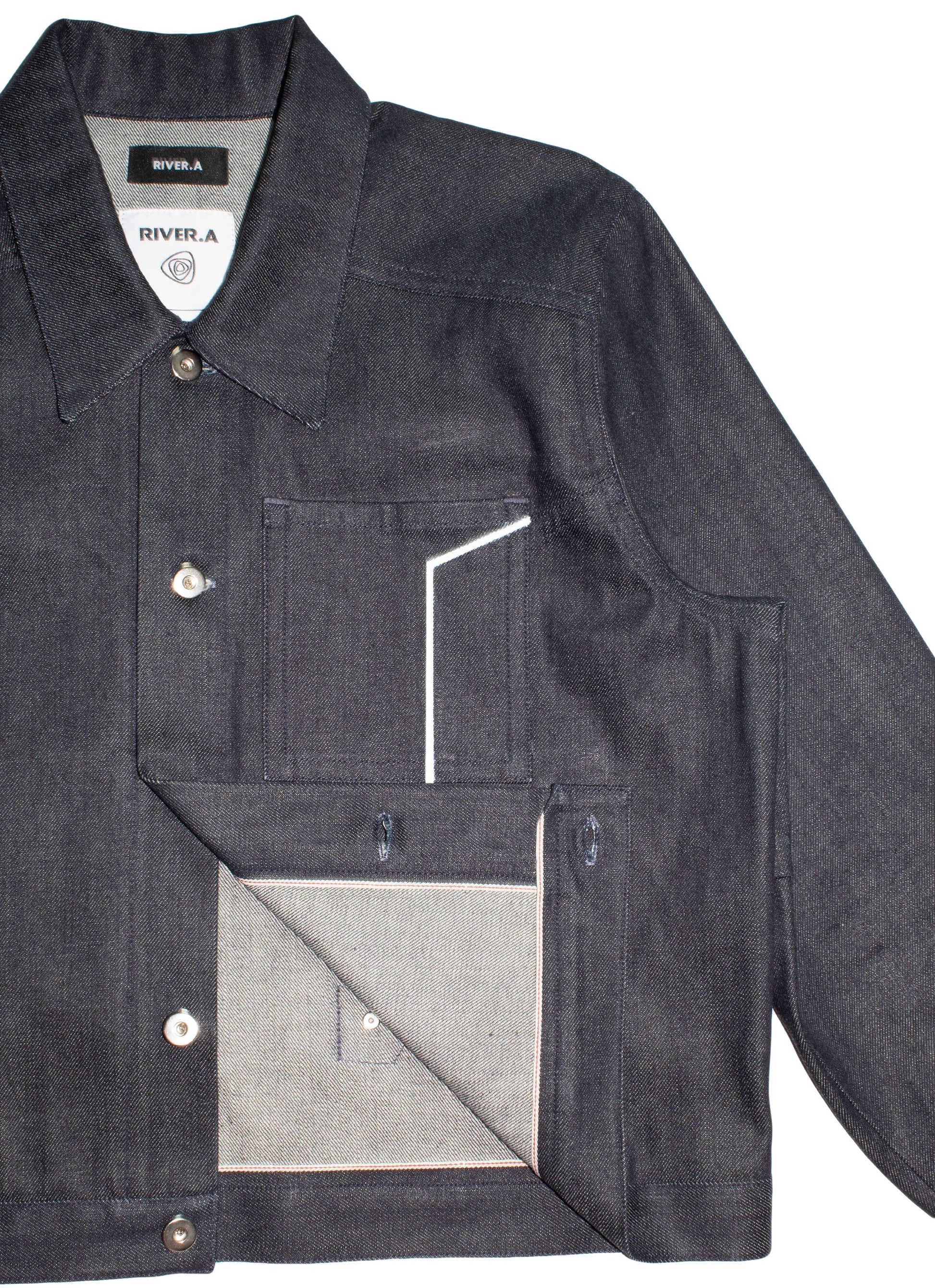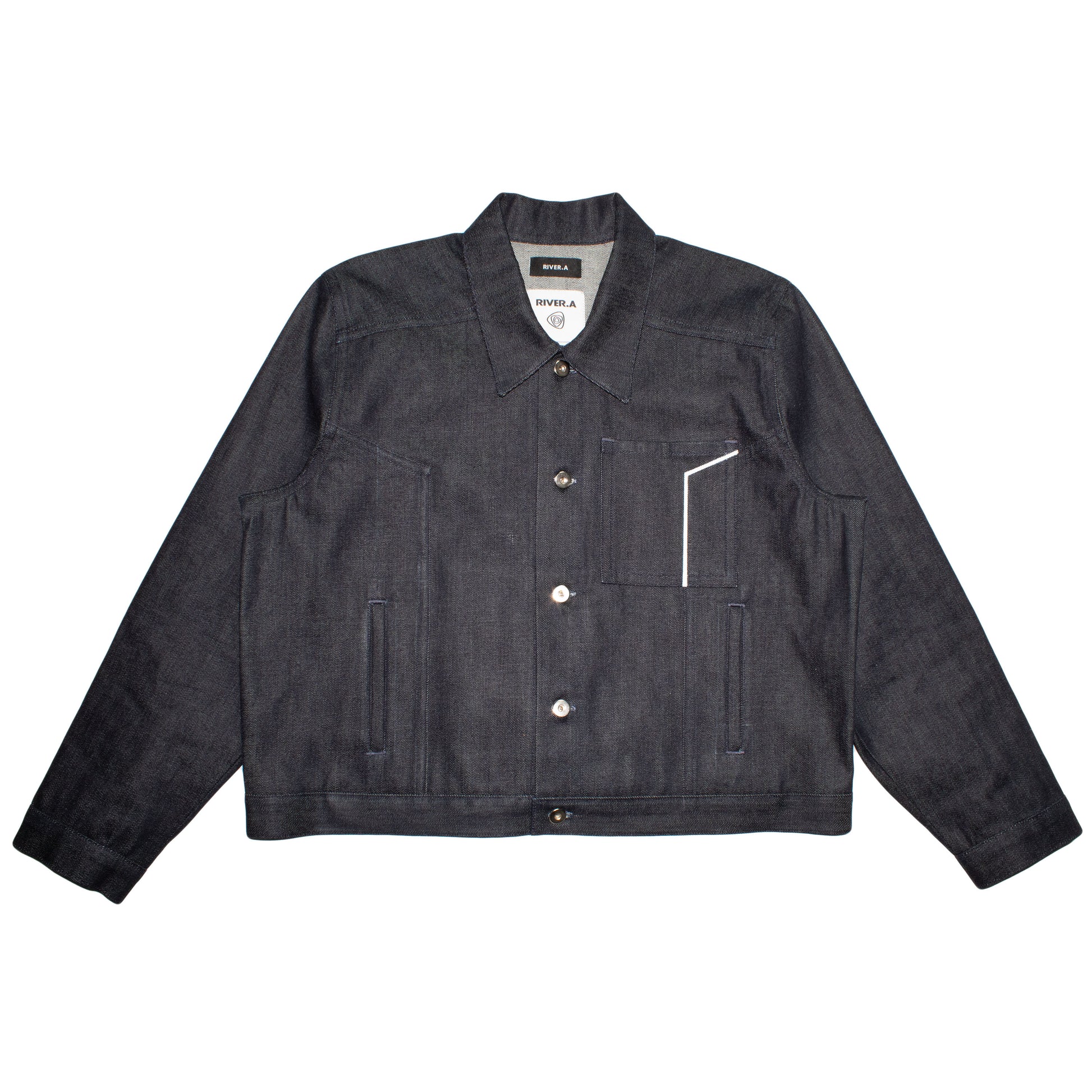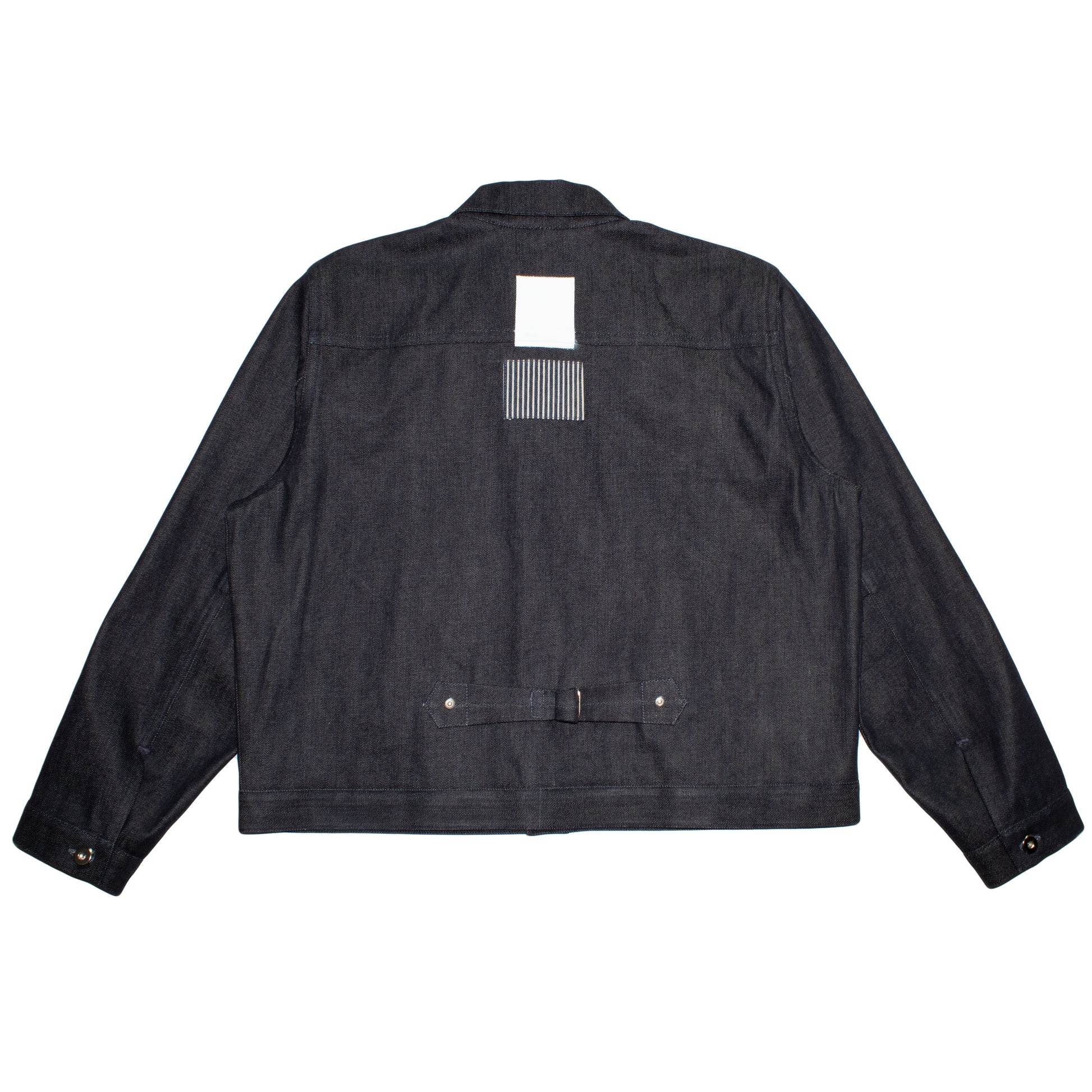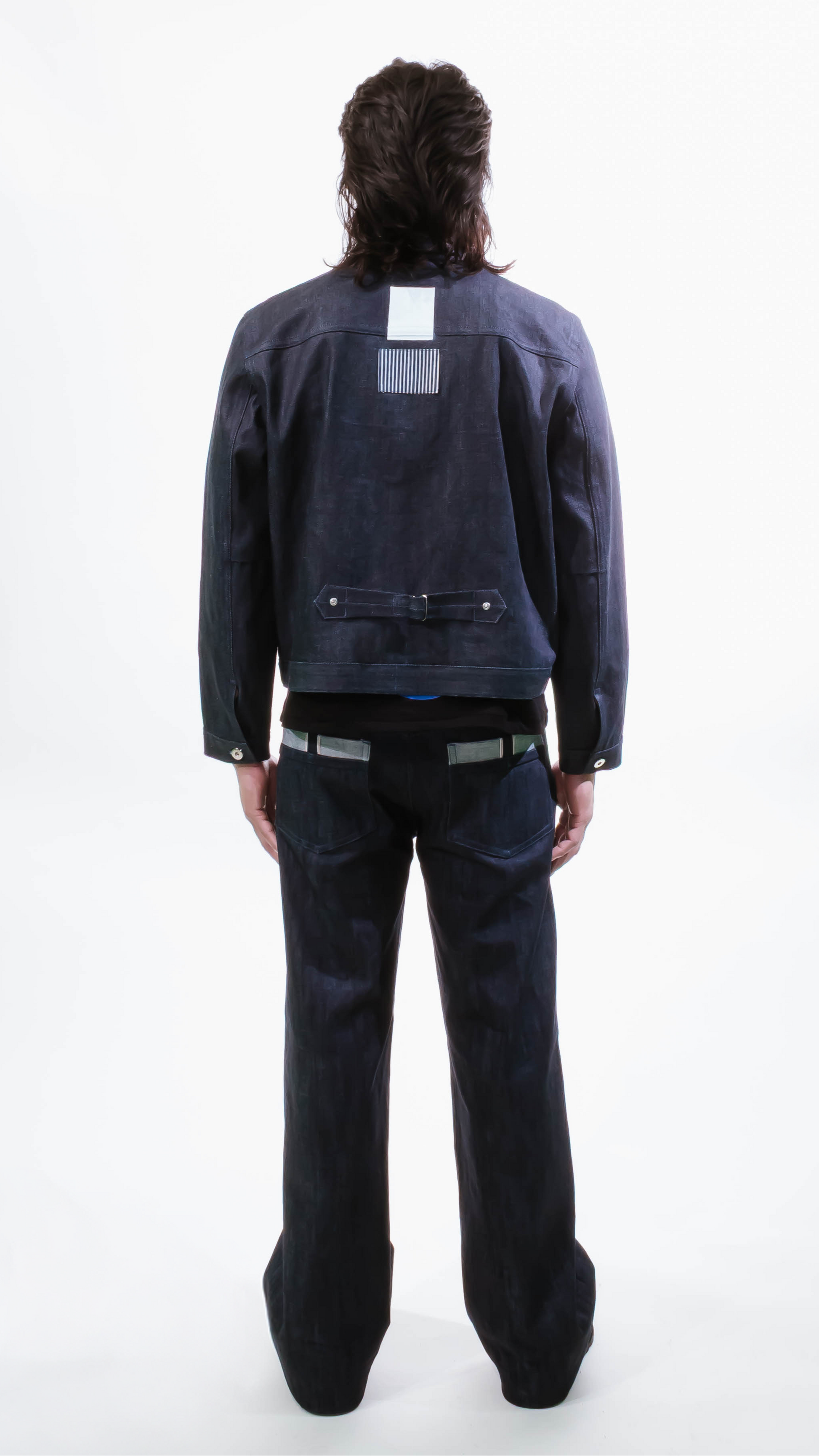 The jacket is built from 14oz Japanese red selvedge denim and constructed with a dropped shoulder silhouette, giving it a clean, modern shape. It features two welt pockets and a chest patch pocket with a hidden pen holder. A traditional buckle back adds structure.